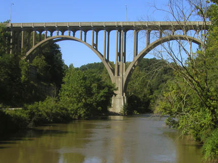 High BridgeCuyahoga Valley National Recreation Area, south of Cleveland OH. A highway crosses the valley high above the Cuyahoga River and trail |