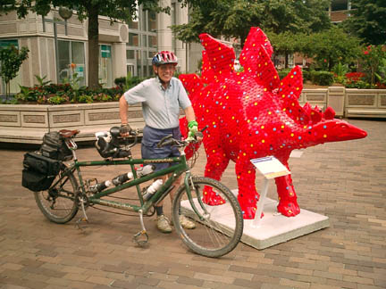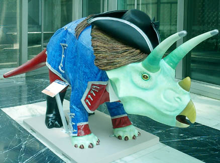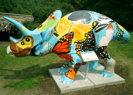 Chicago had cows, now Pittsburgh has dinosaurs. The Carnegie Museums and the City of Pittsburgh are hosting DinoMiteDays, a summer-long city-wide art-in-the-streets event. For us, it's 100 fiberglass dinosaurs. Artists from across the country competed for the chance to decorate them, regional companies have sponsored them, and they're on display in public places around the region. In October they'll be auctioned off to benefit the Carnegie Museum's world-class dinosaur exhibit. On display: