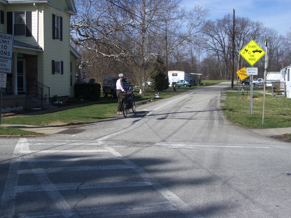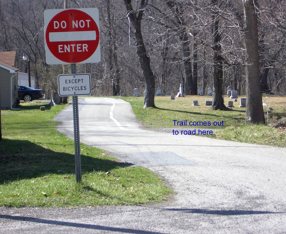 This street is a dead end, but a bicycle trail leads from the end of the trail into the woods