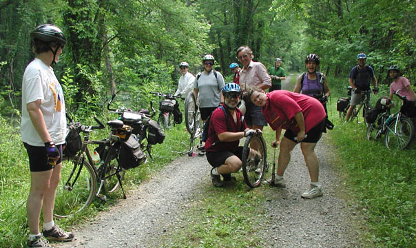 How many cyclists does it take to fix a flat? |